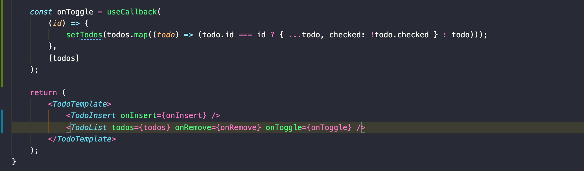 삭제와 마찬가지로 TodoListItem 컴포넌트로 onToggle 함수를 전달해줍니다.