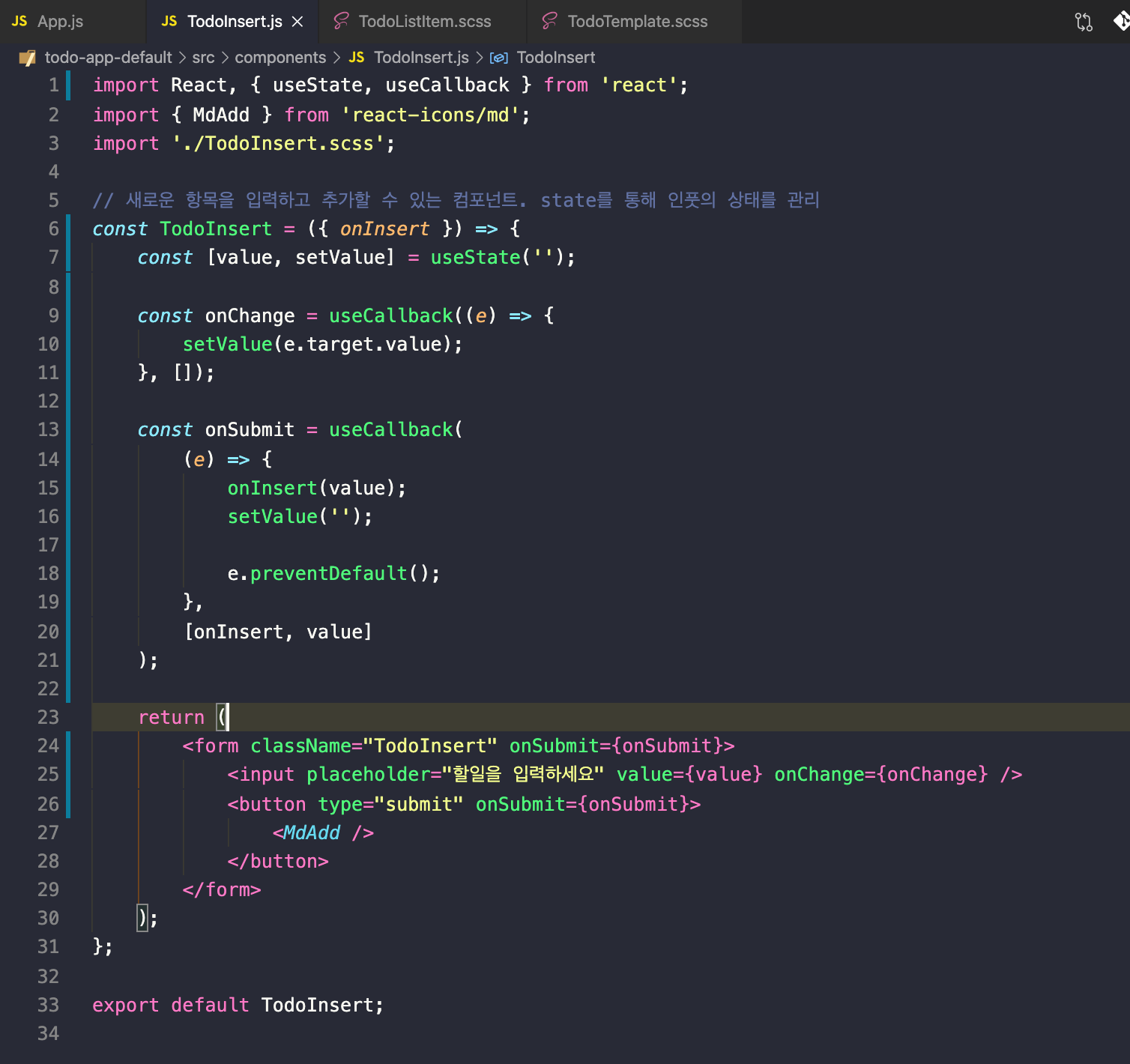 먼저 TodoInsert 컴포넌트부터 수정하겠습니다.