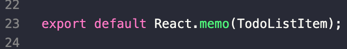 다시 코드로 돌아와서, 만들었던 TodoListItem.js를 보면 todo, onRemove, onToggle 같은 요소를 props로 받고 있는데 이때 memoization 을 활용하면 이들 요소가 바뀌지 않는 한 리렌더링을 하지 않습니다.