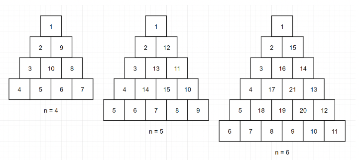 코딩테스트 연습 - 삼각 달팽이